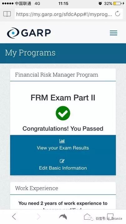 首先,登录协会网站(www.garp.org)输入账号和密码,点击进去“my program”
